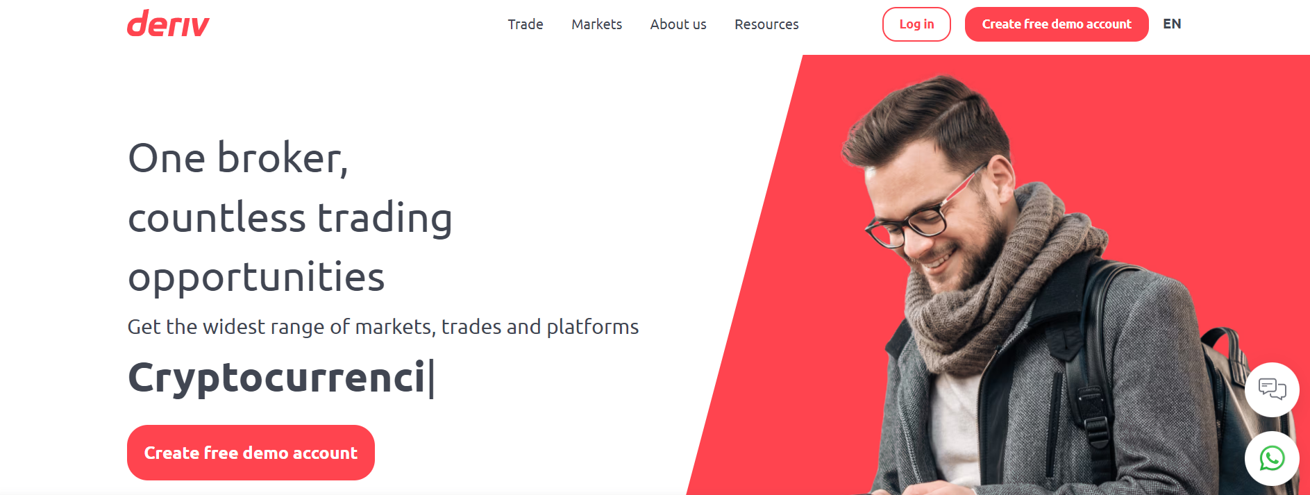 Deriv is an online trading platform that offers a variety of financial instruments to trade on its proprietary platforms. With over 20 years of experience, it provides trading opportunities in CFDs and derivatives on Forex, stocks, indices, cryptocurrencies, options, and commodities.