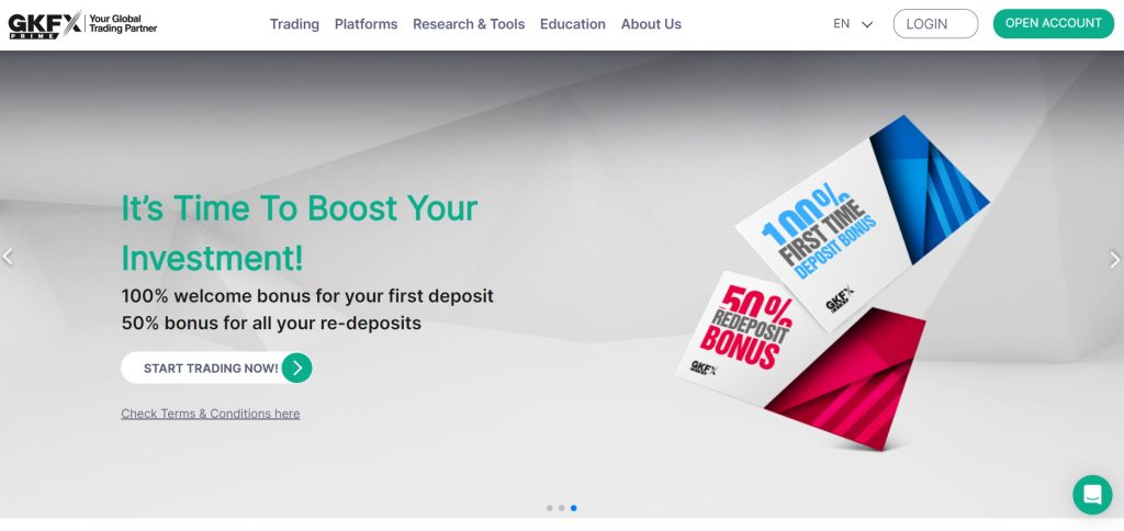 GKFX Prime is a strong brand in Forex and CFD trading industry. The broker offers more than 400 trading instruments with competitive prices and accurate execution including Forex, Stocks (Shares), Indices, Commodities, and Cryptos.
